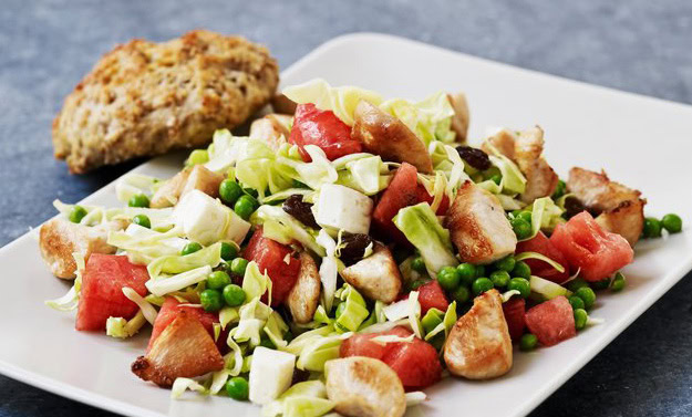 Salat med kylling, spidskål og vandmelon