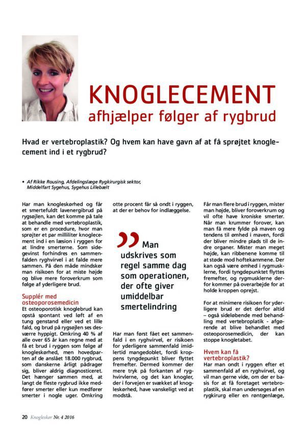 Vertebroplastik: Knoglecement afhjælper følger af rygbrud - Rikke Rousing - 2016