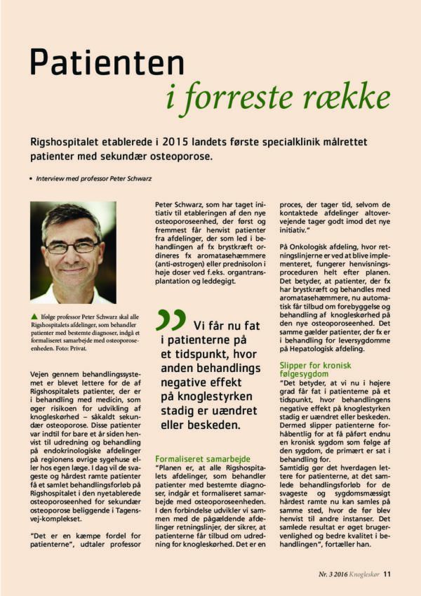 Sekundær osteoporose: Patienten i forreste række - Peter Schwarz - 2016