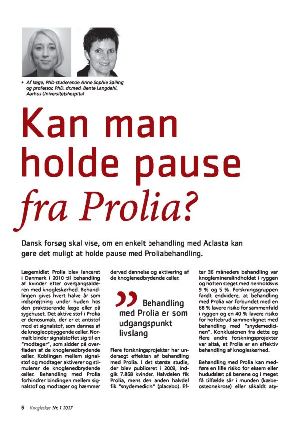 Pause med Prolia - Bente Langdahl og Anne Sophie Sølling - 2017