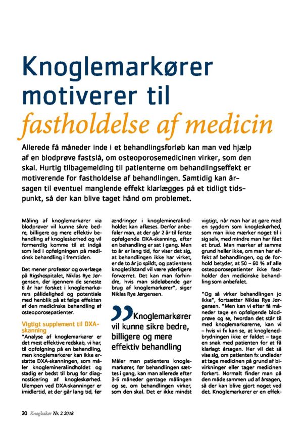 Knoglemarkører motiverer til fastholdelse af behandlingen - Niklas Rye Jørgensen - 2018