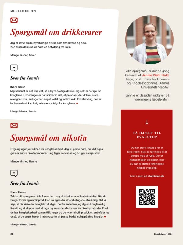 2024 Medlemsbrev - spørgsmål besvaret af læge Jannie Hald