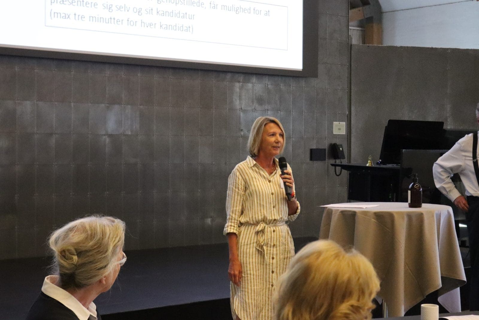 Linda Garlov og de seks øvrige kandidater til landsbestyrelsen præsenterede sig for repræsentantskabet inden afstemning. Foto: Jonathan Hammershøi