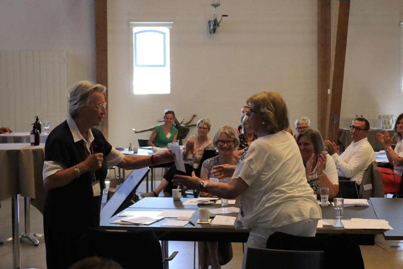 Landsformand Ulla Knappe takkede afgående næstformand Vinnie Thorsen samt Helle Nielsen og Inger Raben-Pedersen for indsatsen som hhv. suppleant og bestyrelsesmedlem. Foto: Jonathan Hammershøi